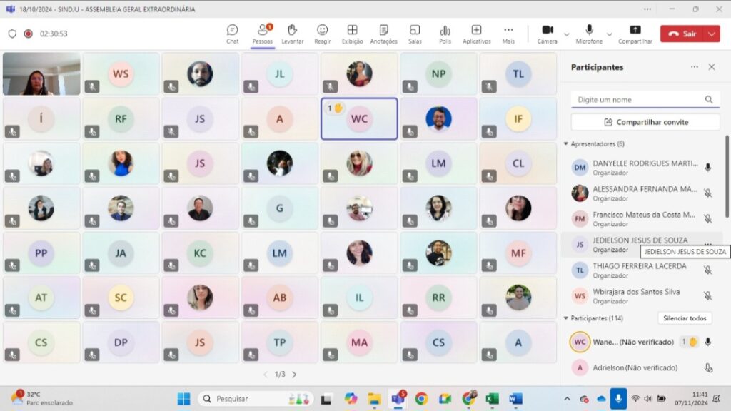 Assembleia Geral Extraordinária debate avanços e obstáculos na luta por condições justas de trabalho, com foco em teletrabalho e apoio à base no interior Na última terça-feira, 7, o SINDJU realizou uma Assembleia Geral Extraordinária (AGE) online que reuniu mais de 120 servidores e servidoras para avaliar o andamento das ações em torno da luta […]