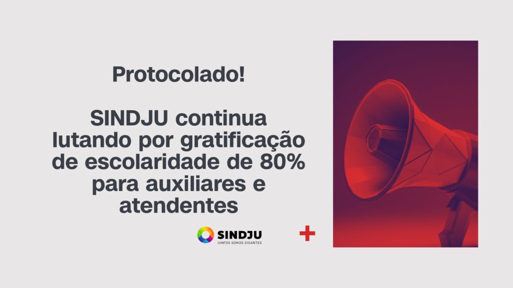 Protocolado: SINDJU continua lutando por gratificação de escolaridade de 80% para auxiliares e atendentes