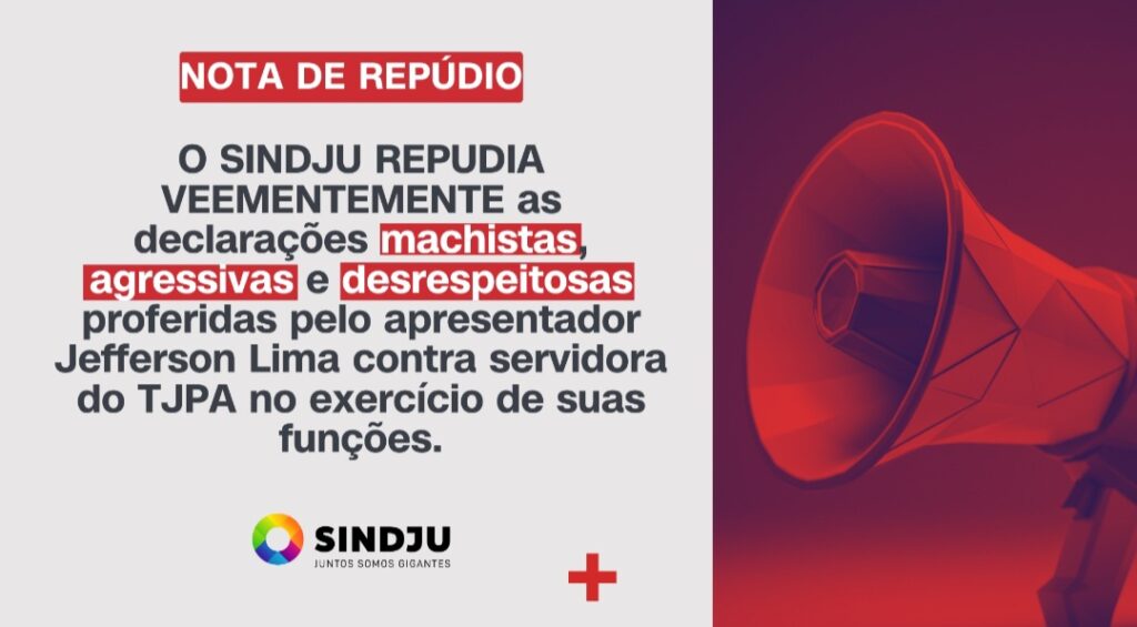 O SINDJU REPUDIA VEEMENTEMENTE as declarações machistas, agressivas e desrespeitosas proferidas pelo apresentador Jefferson Lima, em seu perfil do instagram nesta segunda-feira, 8 de setembro, contra uma servidora do TJPA. Além disso, o sindicato manifesta sua irrestrita solidariedade à servidora alvo dos ataques, reconhecendo sua coragem, firmeza e profissionalismo diante de uma situação de violência […]