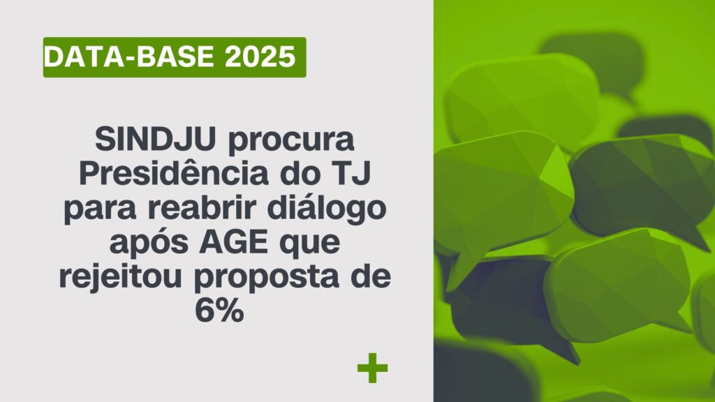 A pauta é data-base 2025: SINDJU procura Presidência do TJ para reabrir diálogo após AGE que rejeitou proposta de 6%