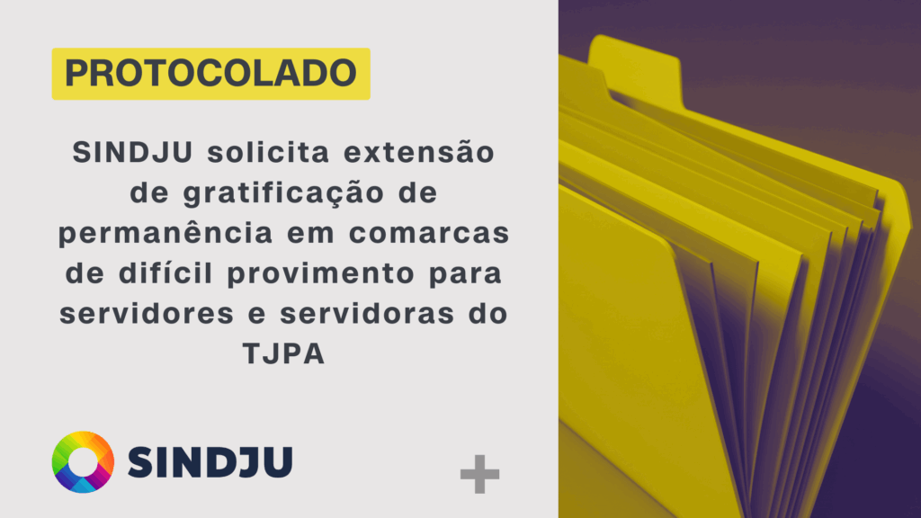 Entidade pede isonomia com magistrados; proposta inclui vantagens financeiras e não financeiras O SINDJU protocolou, nesta segunda-feira (02/06), ofício requerendo a extensão da gratificação de permanência em comarcas de difícil provimento para servidores e servidoras lotados em tais comarcas. O documento pede equiparação com os benefícios já previstos para magistrados, conforme Resolução CNJ nº 557/2024, […]