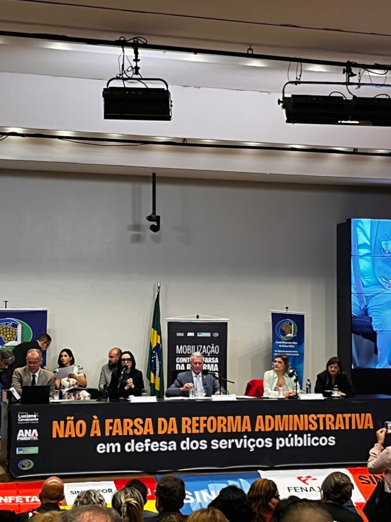 A capital federal foi palco de intensa movimentação sindical, com a participação do SINDJU e diversas outras entidades de classe em atividades contra reforma administrativa, e a presidente do SINDJU, Danyelle Martins, esteve em Brasília participando da agenda da Federação. Na terça-feira, 14, a Frente Parlamentar Mista em Defesa do Serviço Público promoveu, na Câmara dos Deputados, o seminário “Não à farsa da Reforma Administrativa”, reforçando a necessidade de organização para combater os retrocessos contidos na proposta. Federação e sindicatos participaram da atividade, reafirmando seu compromisso histórico com a defesa dos direitos das trabalhadoras e dos trabalhadores do Judiciário nos Estados e da sociedade que depende dos serviços públicos.